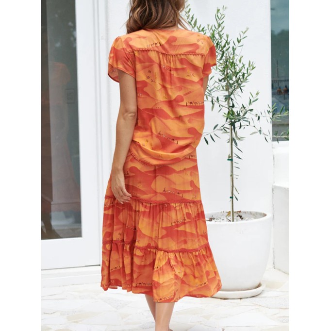 - Product Code: orange-v-neck-cross-neckline-print-waist-dress-13084