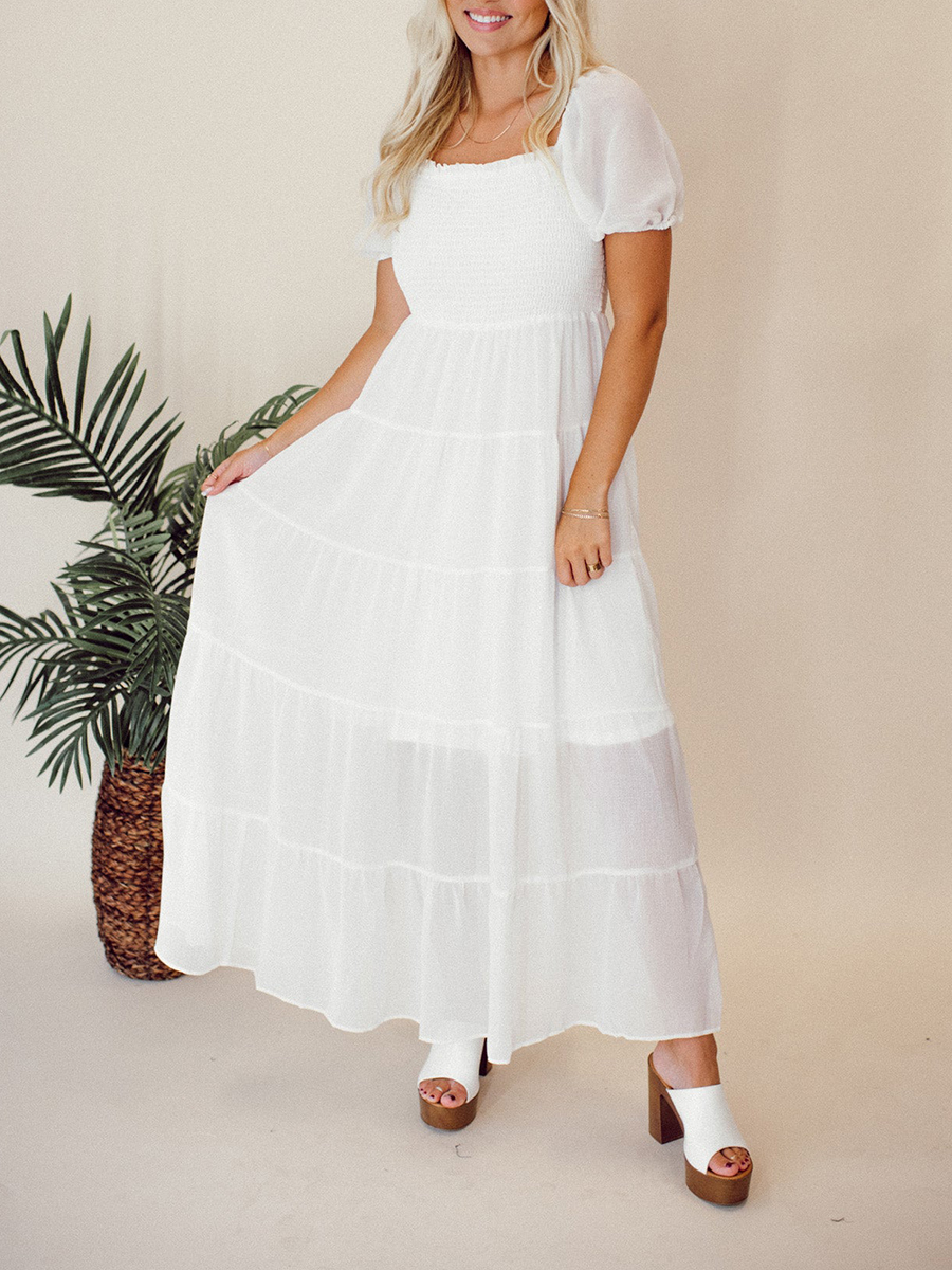 - Product Code: square-neck-bubble-sleeve-layered-extra-long-skirt-13380