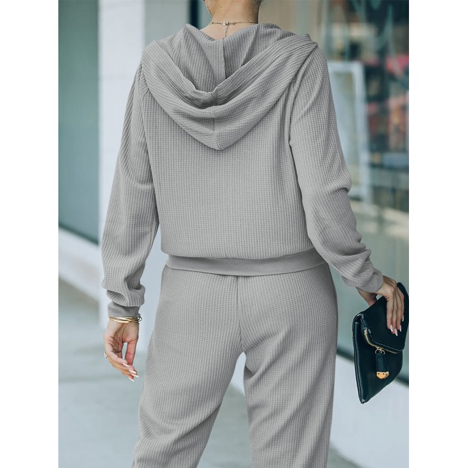 - Product Code: waffle-knit-zippered-hoodie-and-pants-sports-casual-set-21770